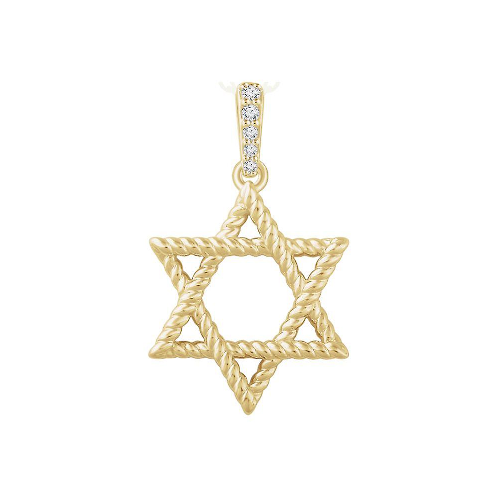 14k Yellow Gold Polished .025 Dwt Diamond Religious Judaica Star of David Pendant Necklace-Pendant for Women