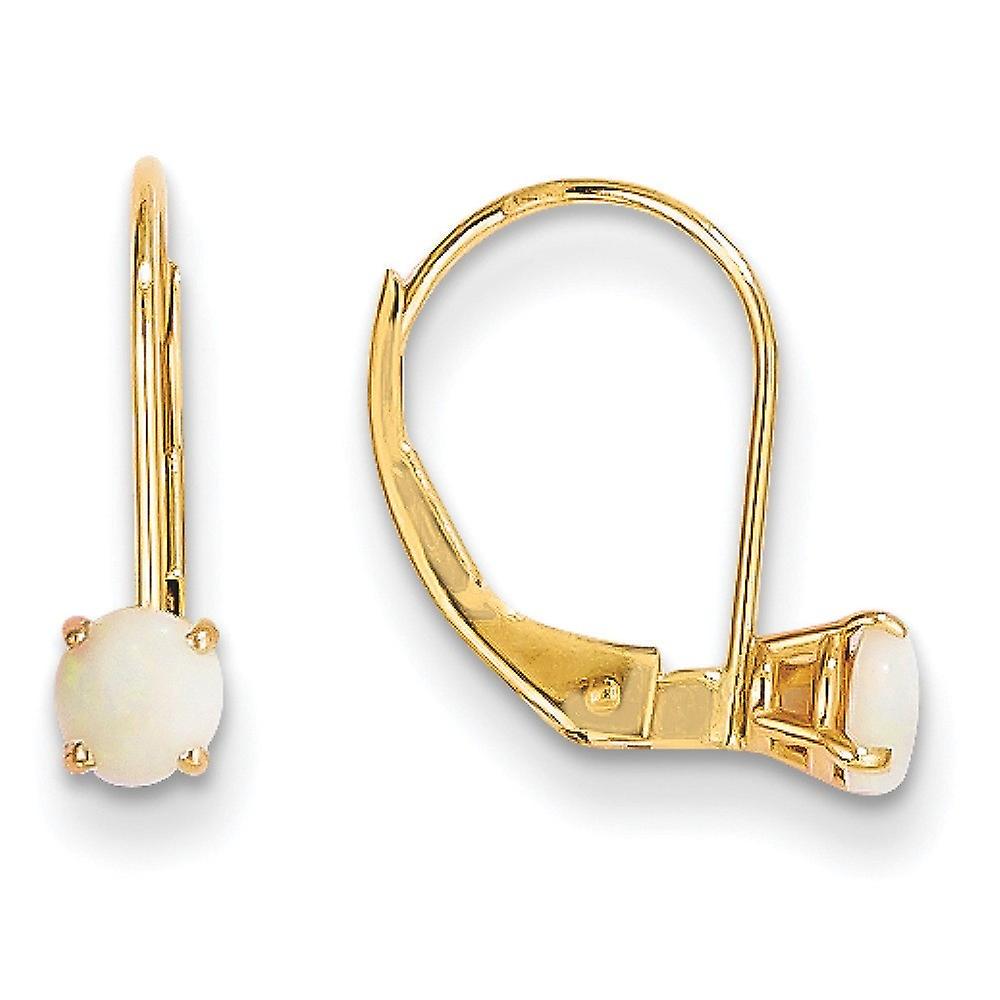 14k Yellow Gold Polished 4mm Round October Simulated Opal Leverback Earrings 13x4mm Wid Stud Earring for Women