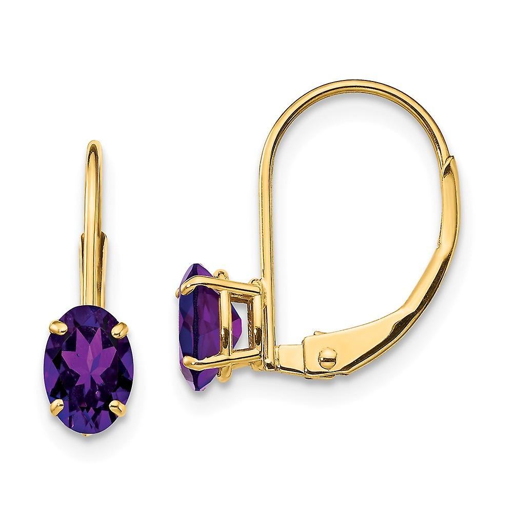 14k Yellow Gold Polished 6x4mm Oval Amethyst Leverback Earrings 16x4mm Wide Stud Earring for Women