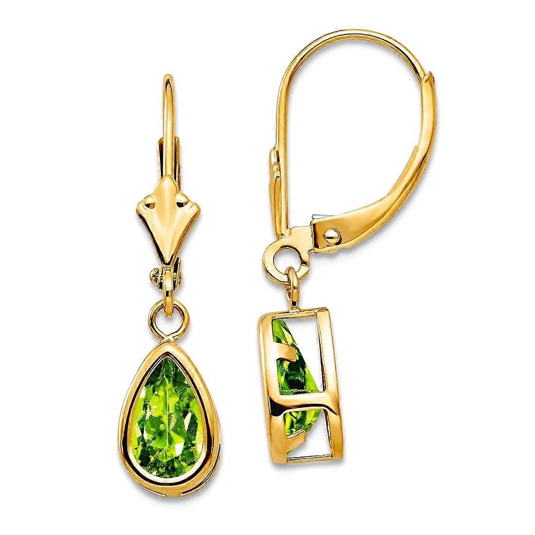 14k Yellow Gold Polished 8x5mm Pear Peridot Leverback Earrings 26x6mm Wide Stud Earring for Women