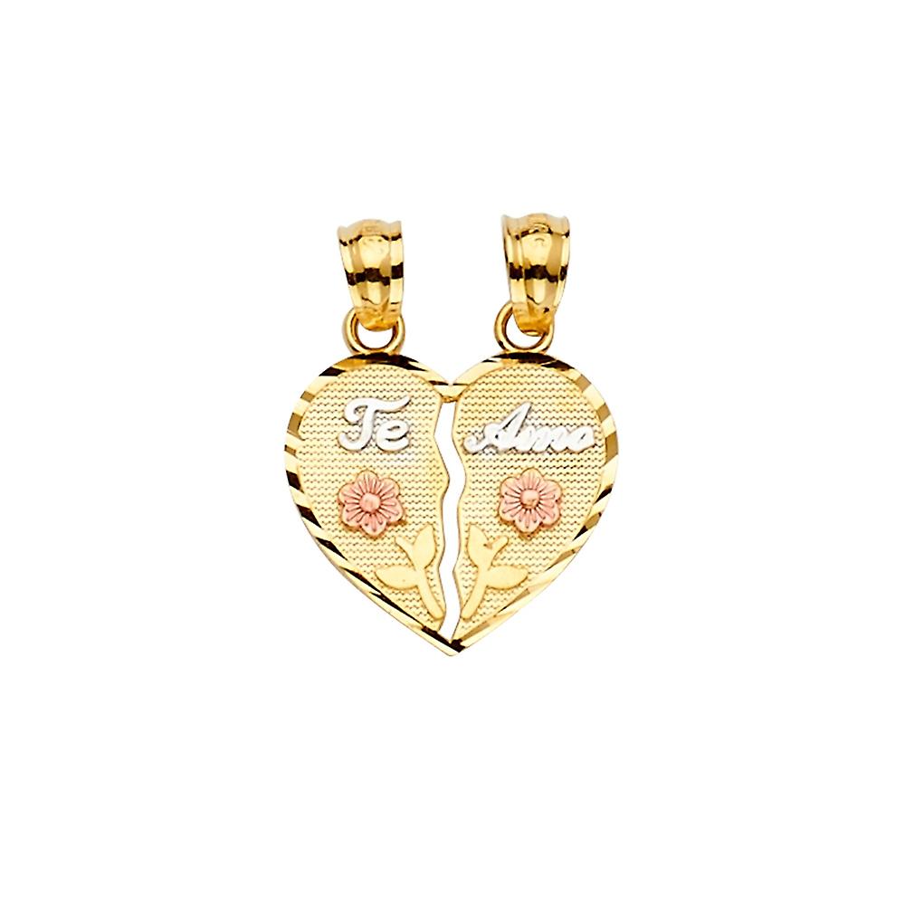 14k Yellow Gold White Gold and Rose Gold Te amo Pendant Necklace 15x20mm-Pendant for Women