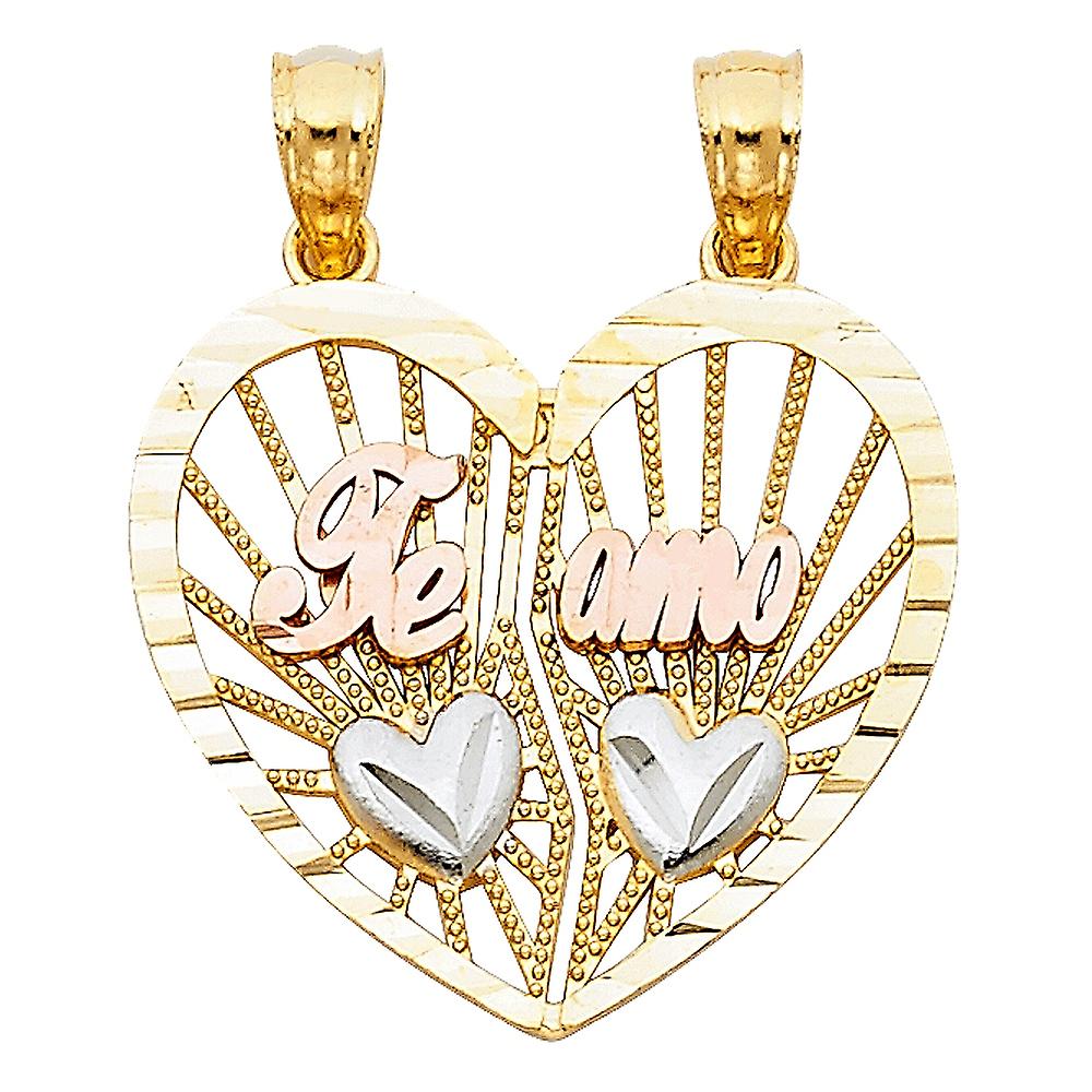 14k Yellow Gold White Gold and Rose Gold Te amo Love Heart 2 Piece Pendant Necklace 22x20mm-Pendant for Women