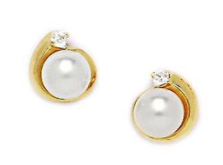 14k Yellow Gold White 6x6mm Freshwater Cultured Pearl and CZ Screw Back Earrings 9x9mm Stud Earring for Women