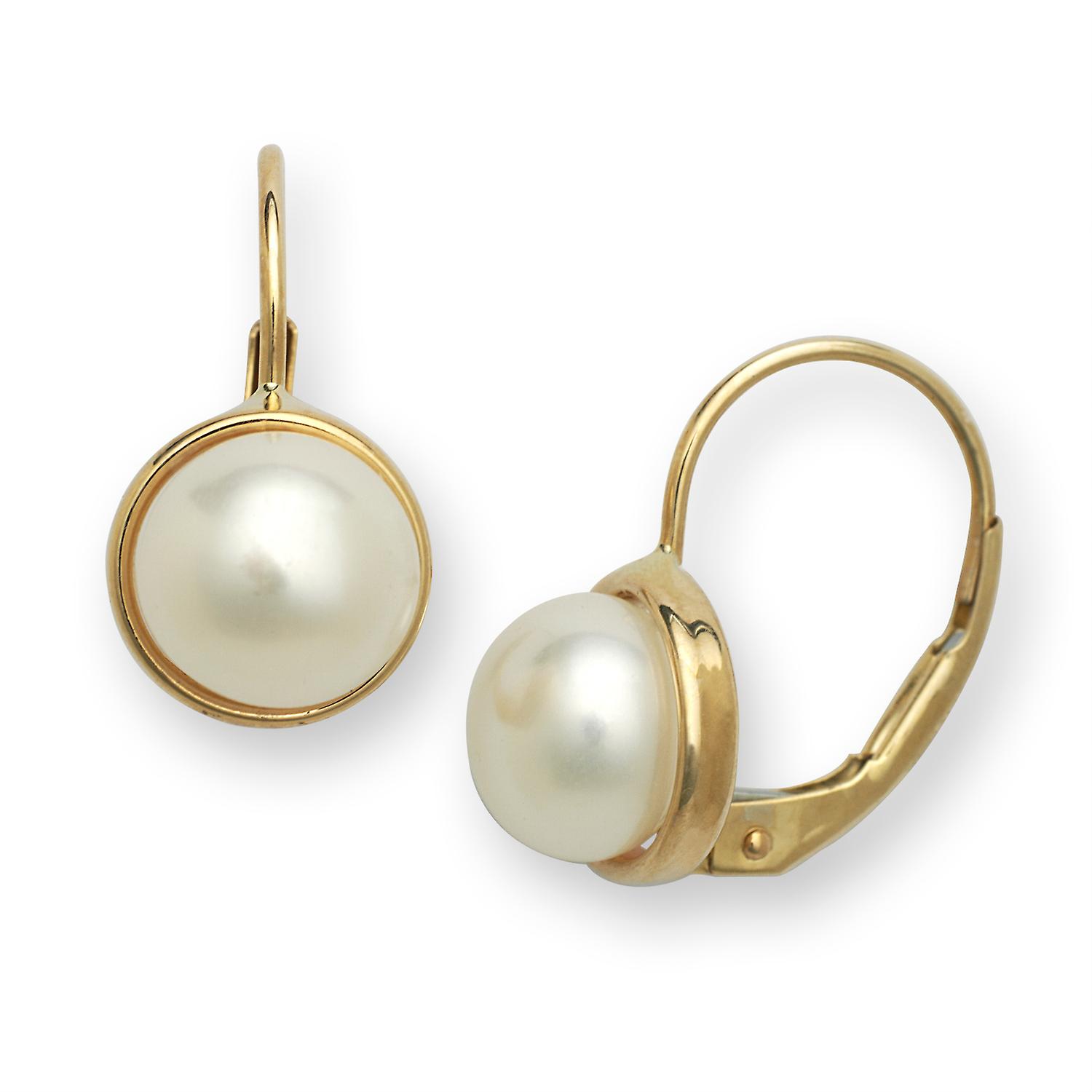 14k Yellow Gold White 8x8mm Freshwater Cultured Pearl Ball Drop Leverback Earrings 17x9mm-Ball Earring for Women