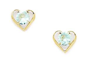 14k Yellow Gold March Lt Blue 4x4mm CZ Love Heart Screw Back Earrings 6x7mm Stud Earring for Women