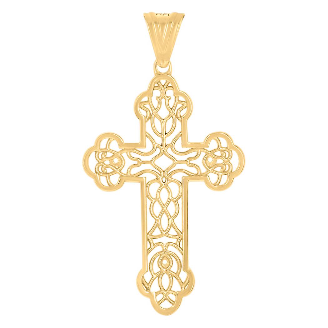 14k Yellow Gold Mens Cross Religious Charm Pendant 37.1x19.8mm Wide Necklace for Men - 2.1 Grams