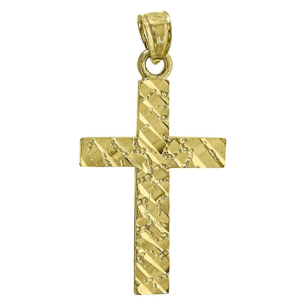 14k Yellow Gold Mens Nugget Cross Height 28.5mm Religious Pendant Charm Necklace for Men - 1.5 Grams