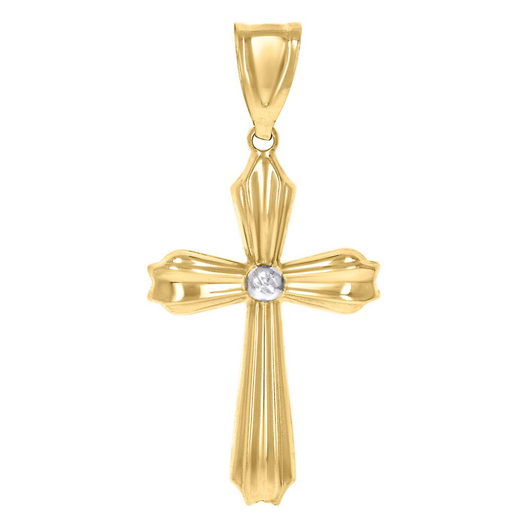 14k Yellow Gold Unisex Cross Religious Charm Pendant Necklace 44.5x21.2mm Wide-Pendant for Women