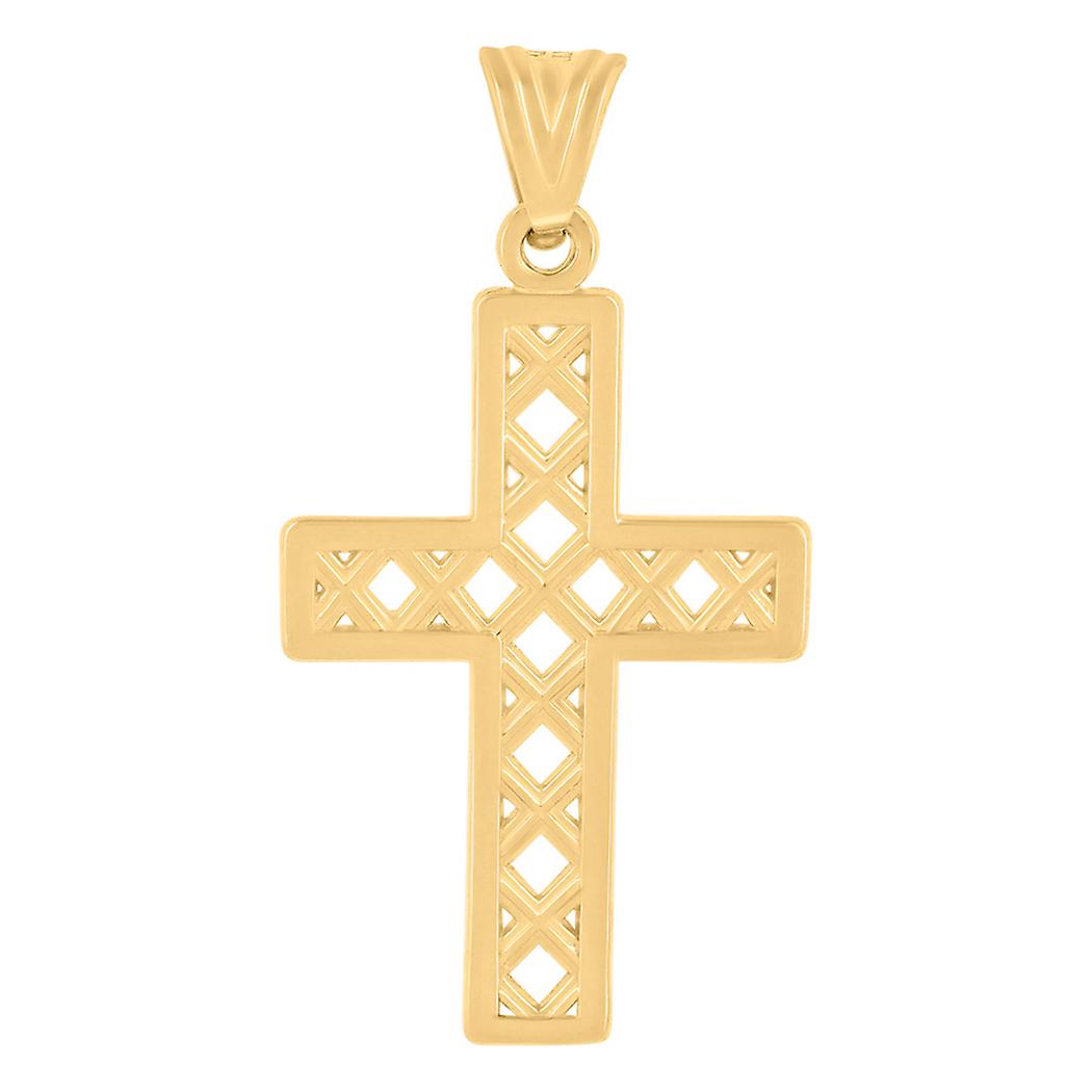 14k Yellow Gold Unisex Cross Religious Pendant Necklace 35.4x18.6mm Wide-Pendant for Women