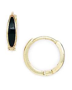 14k Yellow Gold Round Simulated Onyx Hinged Earrings 11x11mm Stud Earring for Women