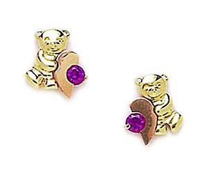 14k Yellow Gold Red Cubic Zirconia Teddy Bear Screw Back Earrings 9x7mm Stud Earring for Women