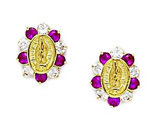 14k Yellow Gold Red Cubic Zirconia Religious Faith Inspiration Jesus Screw Back Earrings 10x9mm Stud Earring for Women