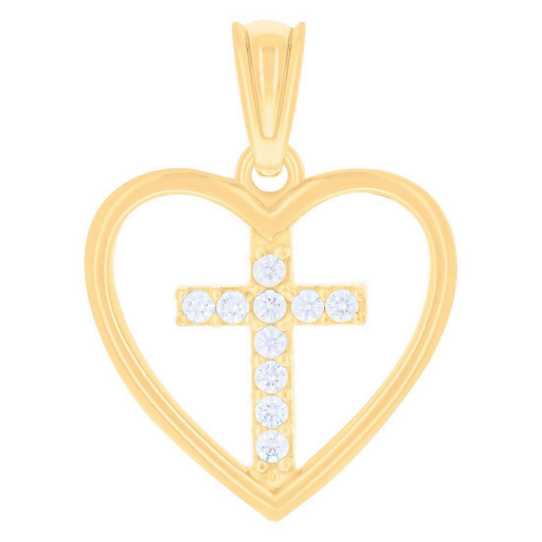 14k Yellow Gold Womens Cubic Zirconia Love Heart Cross Religious Charm Pendant Necklace 20x14.8mm Wide-Pendant for Women