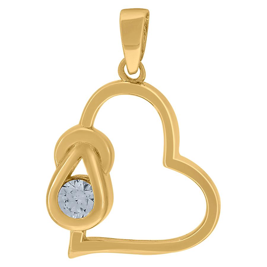 14k Yellow Gold Womens Cubic Zirconia Love Heart Charm Pendant Necklace 20.4x14.1mm Wide-Pendant for Women
