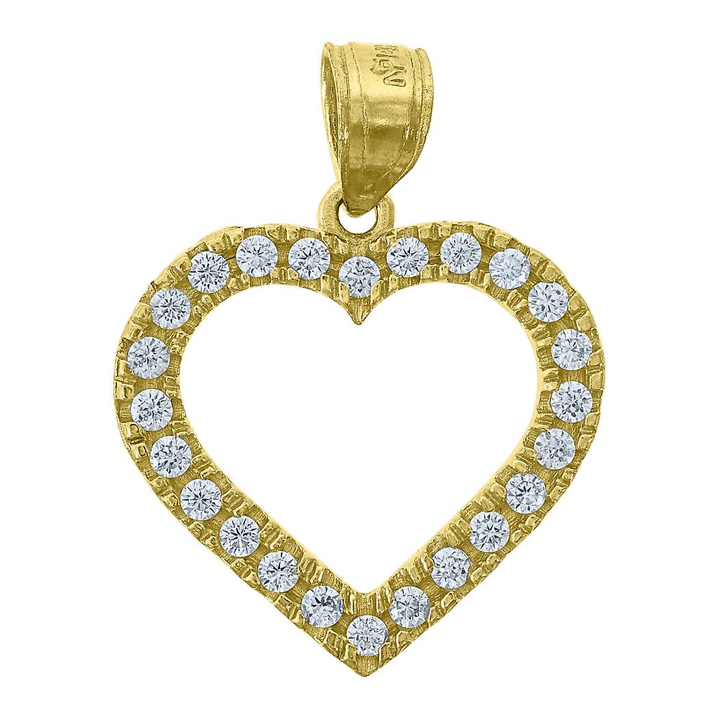 14k Yellow Gold Womens Cubic Zirconia Love Heart Height 23.9mm Pendant Necklace Charm�-Pendant for Women