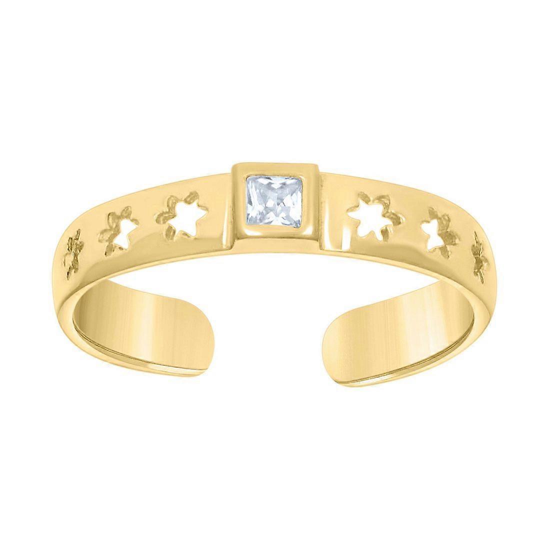 14k Yellow Gold Womens Princess cut Cubic Zirconia Multi Stars Square Head toe ring 2.8x2.6mm Wide-toe ring for Women