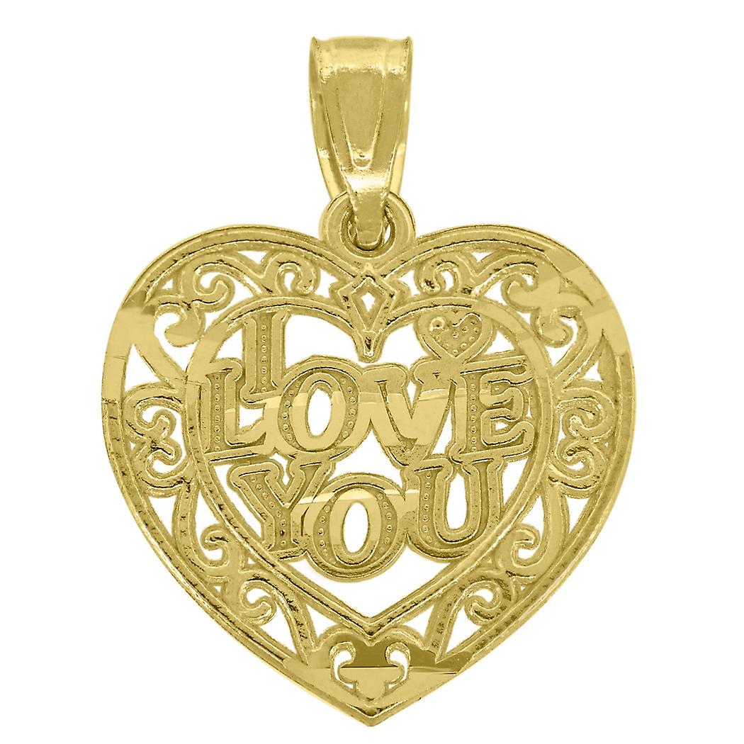 14k Yellow Gold Womens I Love You Heart Pendant Necklace Charm 19.3x14.5mm Wide-Pendant for Women