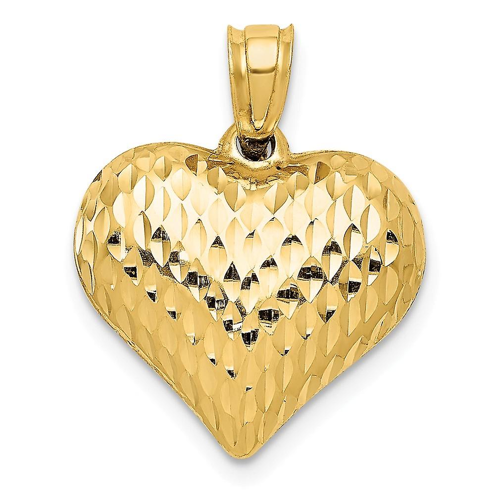 14k Yellow Gold Hollow Sparkle Cut Puffed Love Heart Charm 15.9x19.8mm Pendant Necklace for Women