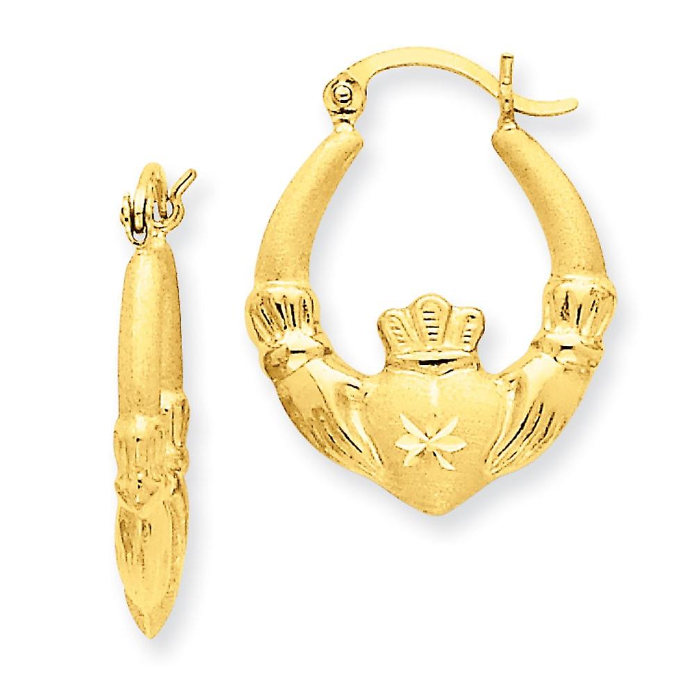 14k Yellow Gold Hollow Hinged post Polished and Satin Irish Claddagh Celtic Trinity Knot Hoop Earrings 12x4mm Wide-Hoop