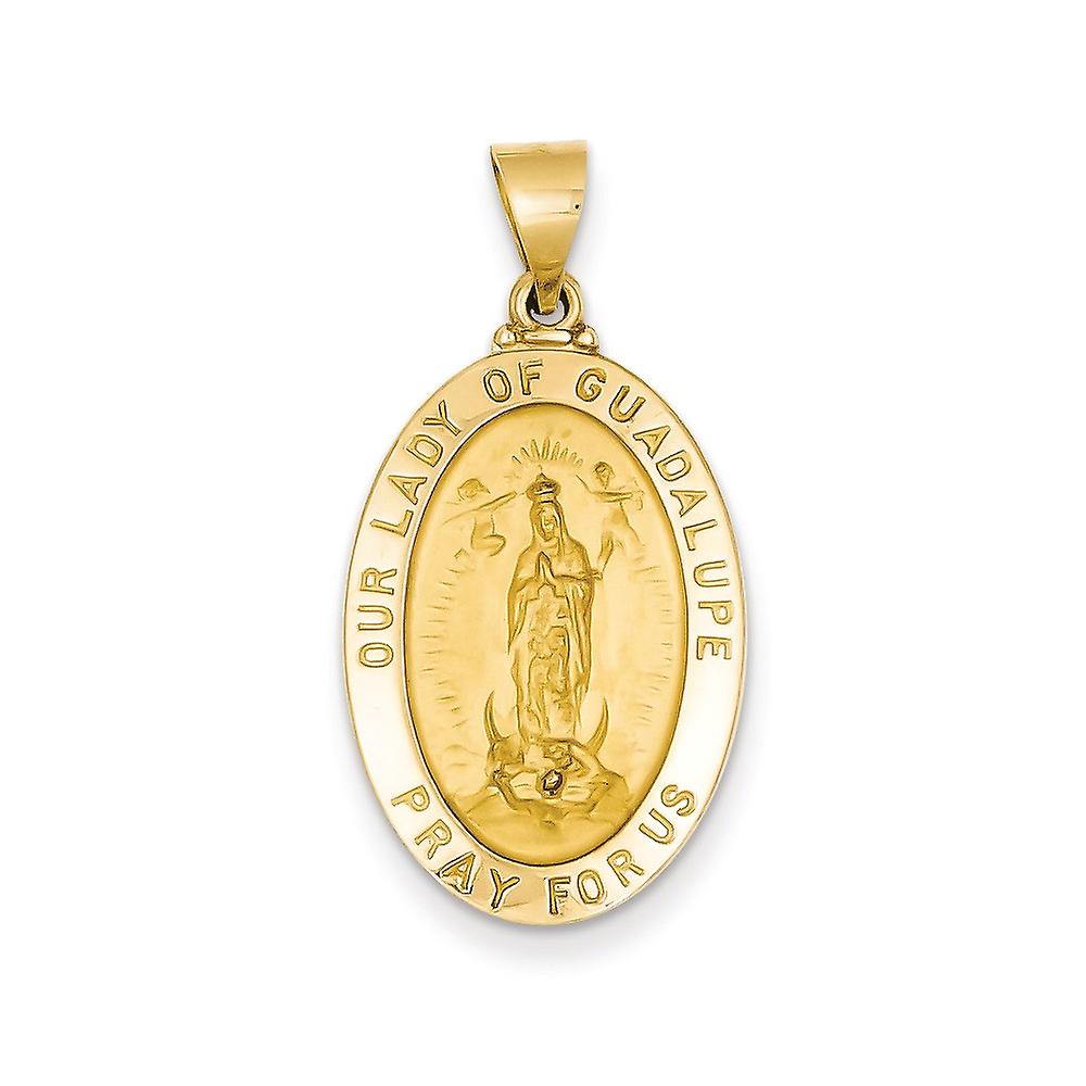 14k Yellow Gold Hollow Polished and Satin Our Lady Of Guadalupe Medal Pendant Necklace 33x16mm Wide-Pendant for Women