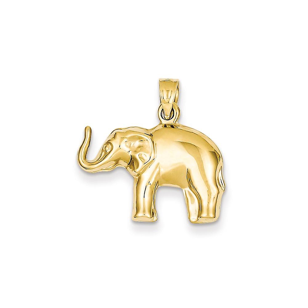 14k Yellow Gold Hollow Polished Elephant Pendant Necklace 21.5x21.1mm-Pendant for Women - 1.0 Grams