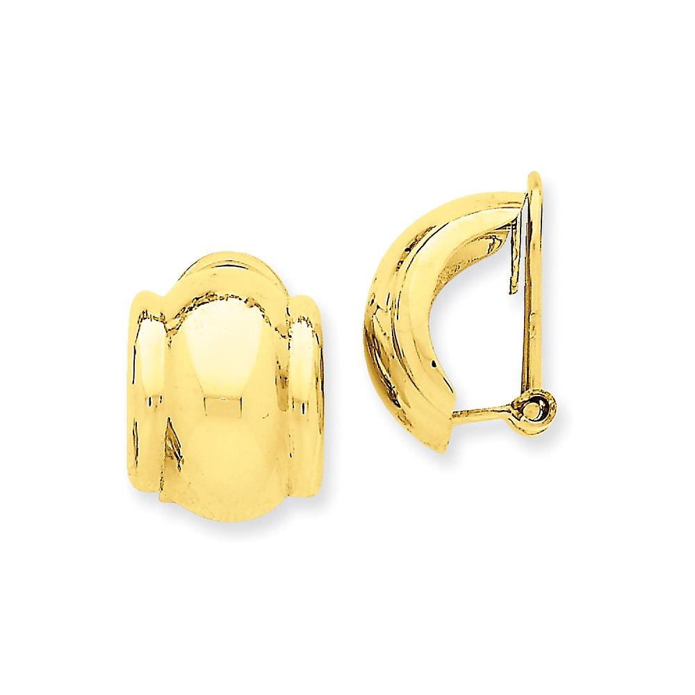 14k Yellow Gold Hollow Polished Omega Clip Non Pierced Earrings 16x12mm Wide-Clip on Earring for Women