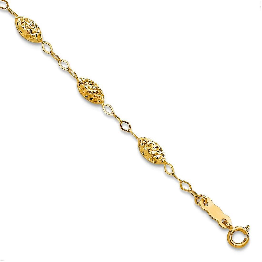 14k Yellow Gold Hollow Polished Spring-Ring Puff Rice Bead With 1inch Ext Anklet-Anklet for Women