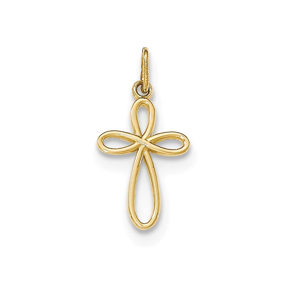 14k Yellow Gold Polished Small Ribbon Cross Pendant - Measures 23x11.5mm Wide - in 14k Yellow Gold - Product Attributes: - Hollow - - Charm/Element Width: 11.5 mm - Width of Item: 11.5 mm - Length of Item: 23 mm - Feature: Solid - - This Item Does Not Ship With a Chain