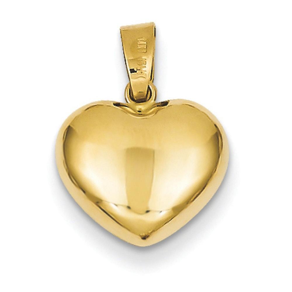 14k Yellow Gold Hollow Polished Puffed Love Heart Charm 12.2x15.9mm Pendant Necklace for Women