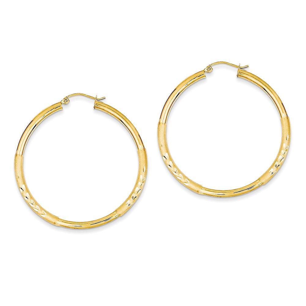 14k Yellow Gold Hollow Polished Hinged post Satin and Sparkle Cut 3mm Round Hoop Earrings 45mm long 3mm Thick-Hoop Earri