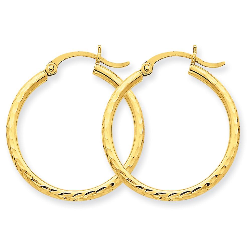 14k Yellow Gold Hollow Polished Hinged post Sparkle Cut 2mm Round Tube Hoop Earrings 20x20mm-Hoop Earring for Women