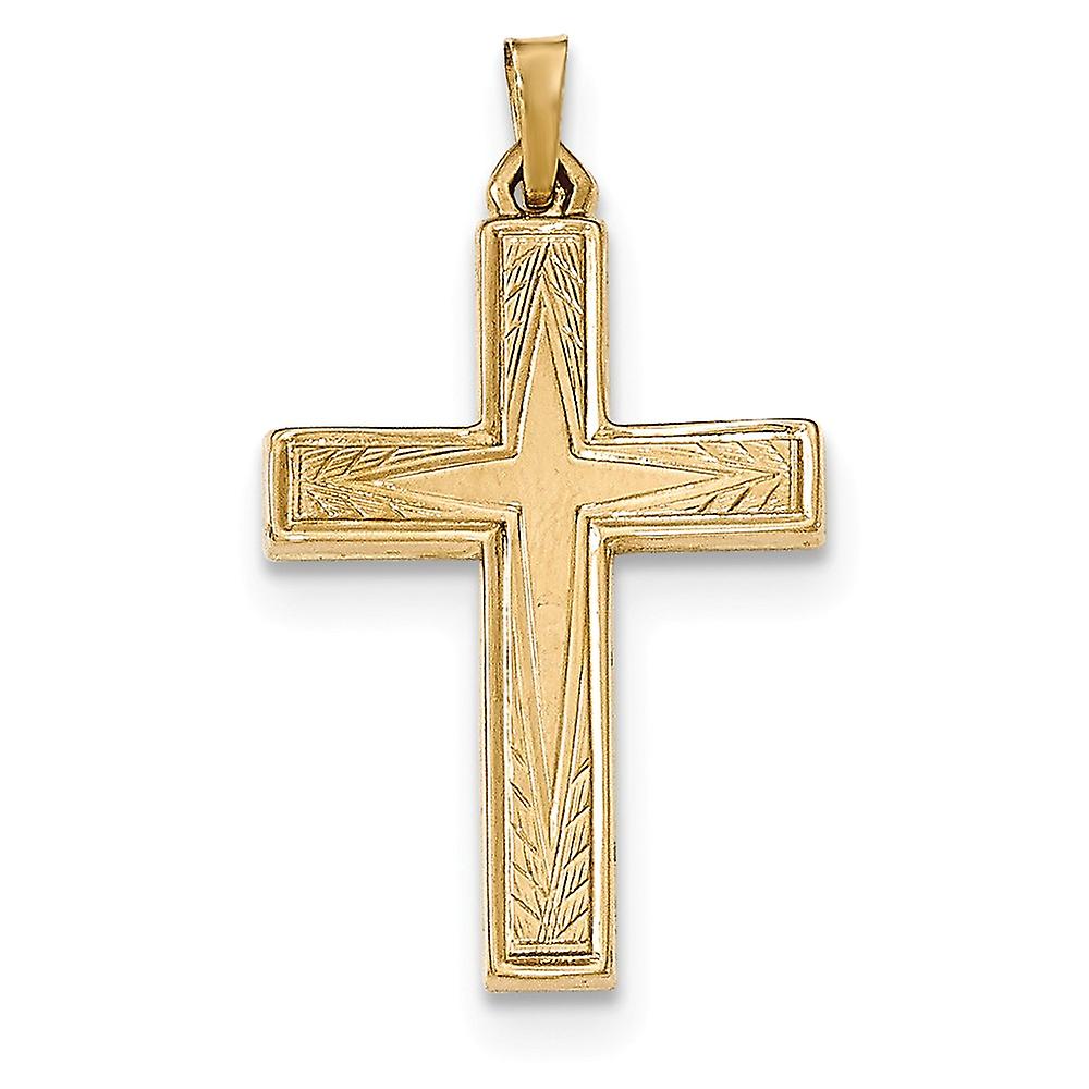 14k Yellow Gold Hollow Polished Latin Religious Faith Cross Pendant Necklace 35.5x19.75mm Wide-Pendant for Women