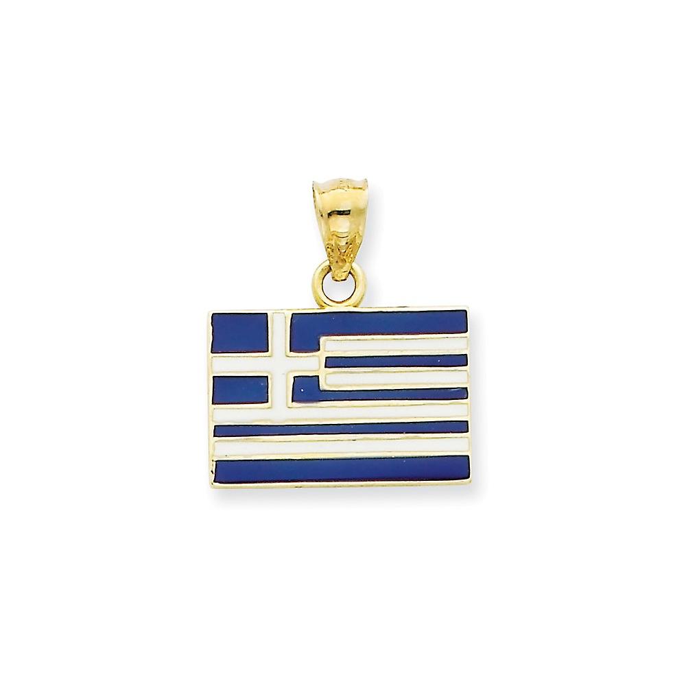 14k Yellow Gold Not engraveable Solid Enameled Greece Flag Pendant Necklace 20x18mm-Pendant for Women