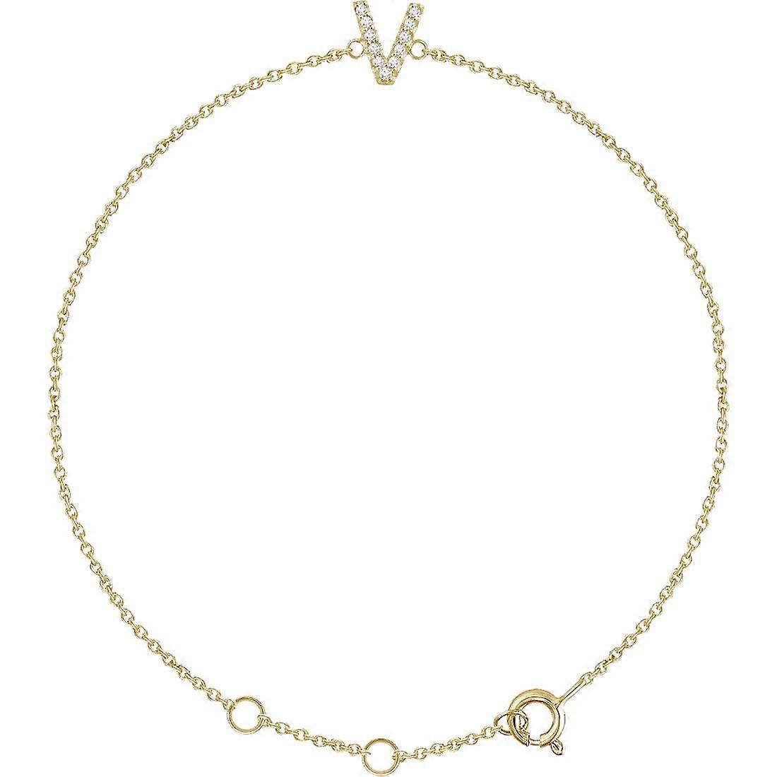 14k Yellow Gold Letter Name Personalized Monogram Initial V Polished .05 Carat Diamond 6 7 Inch Initial Bracelet Link-Br