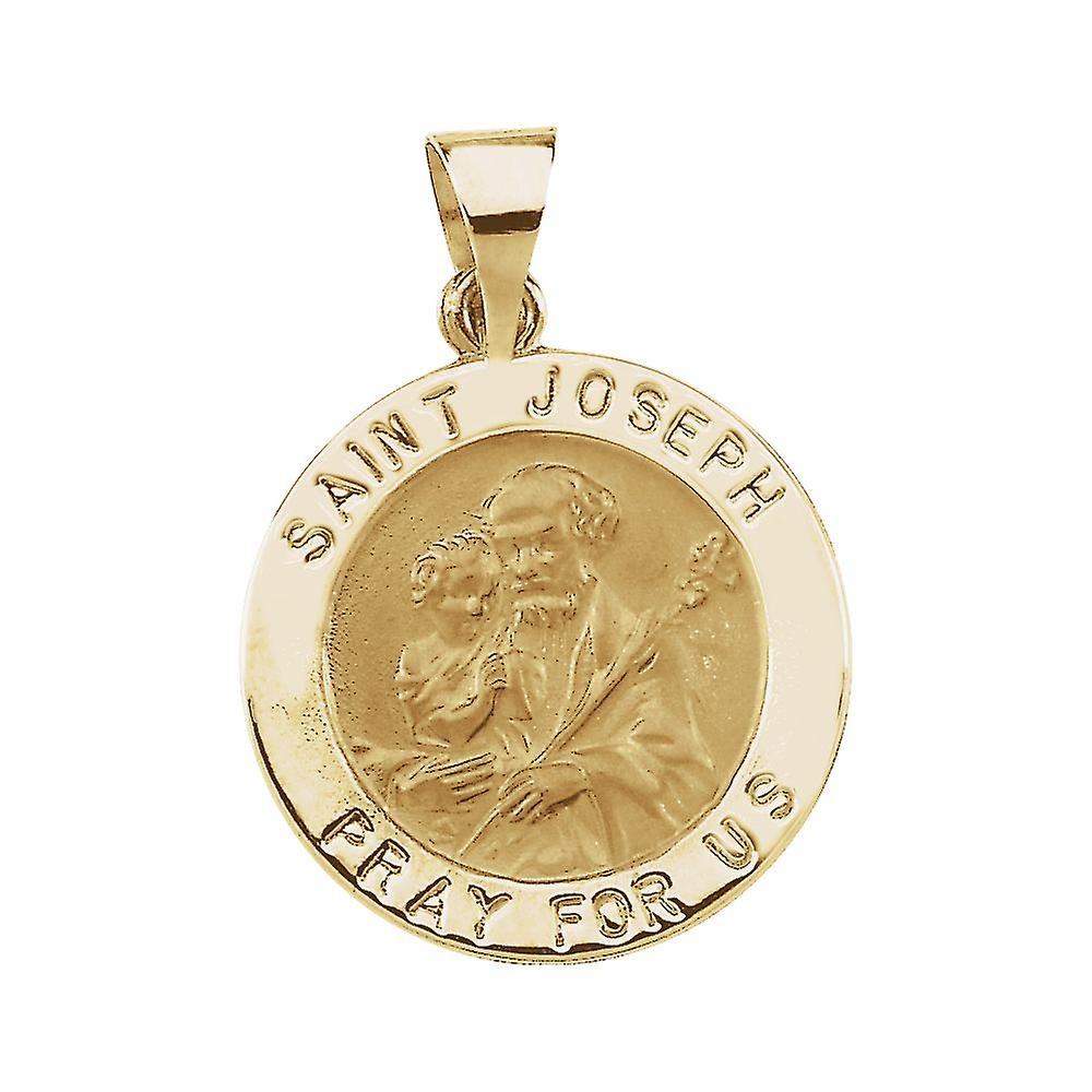 14k Yellow Gold 18mm Polished Round Hollow St. Joseph Medal Pendant Necklace-Pendant for Women