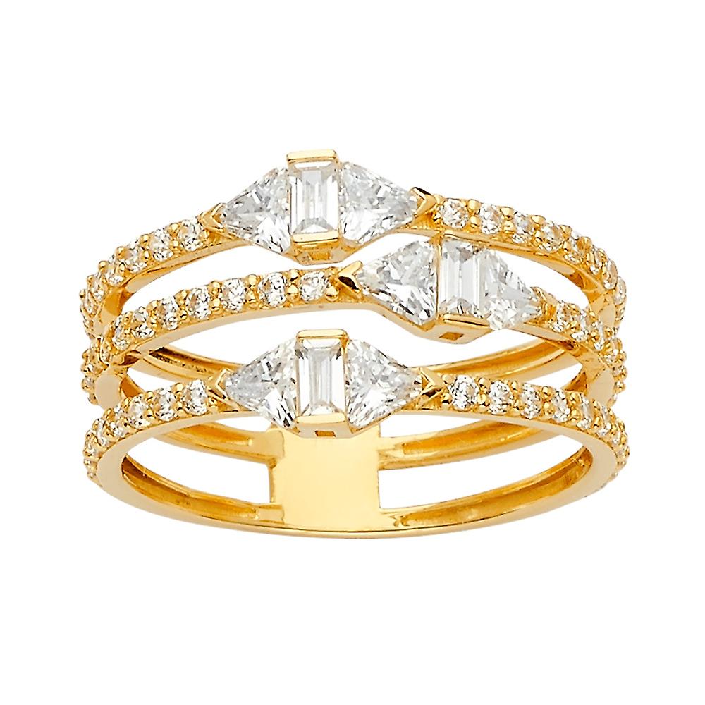 14k Yellow Gold 3 Rows Cubic Zirconia Ring Size 7 Band Style-Ring for Women - 2.9 Grams