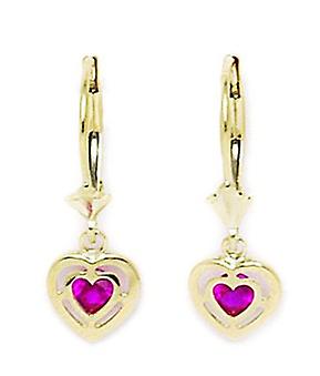 14k Yellow Gold July Red 3x3mm CZ Love Heart Drop Leverback Earrings 23x8mm Stud Earring for Women