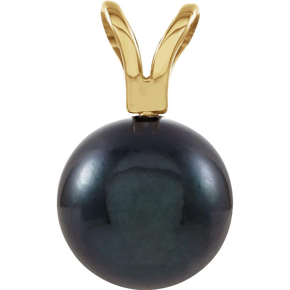 14k Yellow Gold 7mm Polished Black Cultured Pearl Pendant Necklace-Pendant for Women
