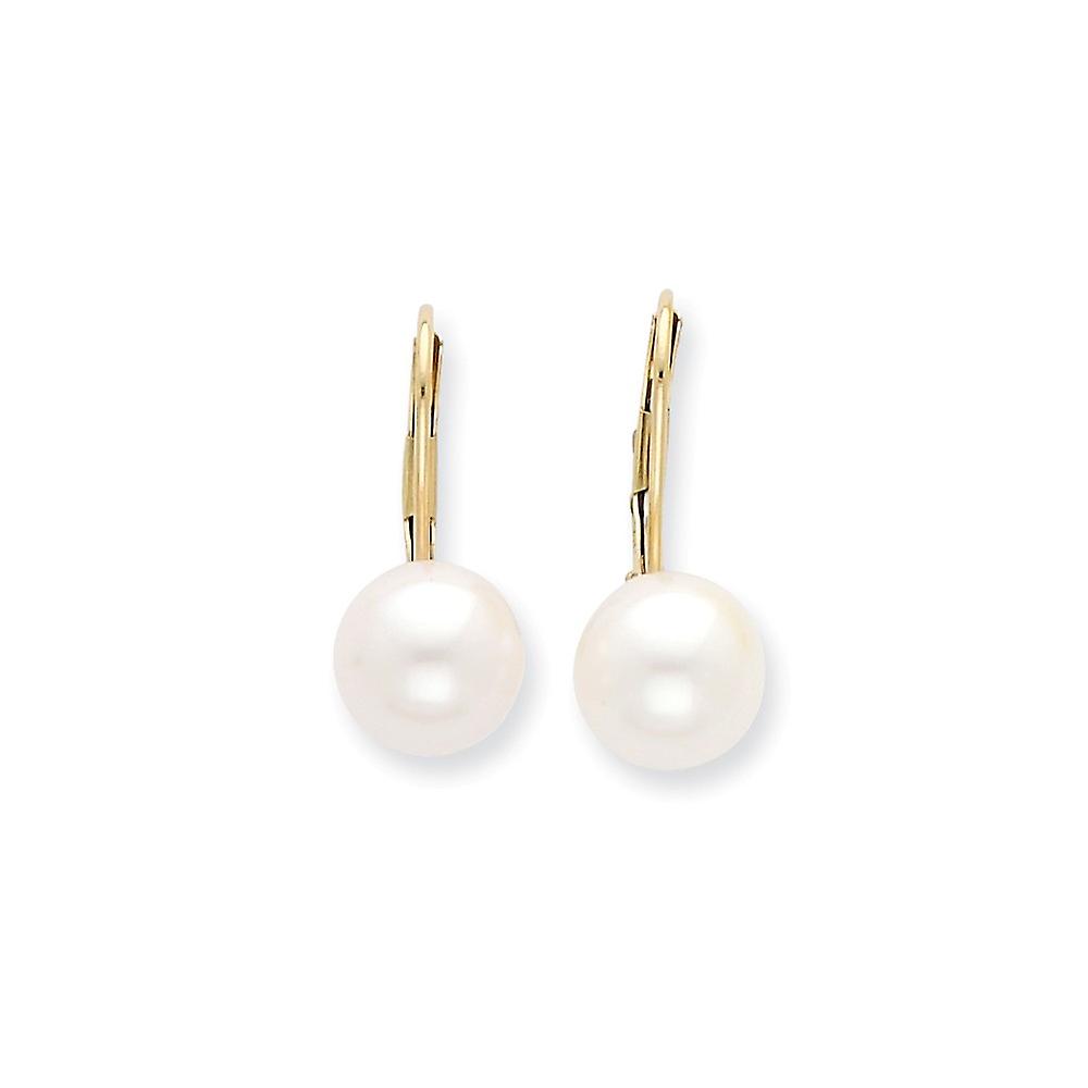 14k Yellow Gold 8 8.5mm Freshwater Cultured Pearl Leverback Earrings 20x8.5mm Wide Stud Earring for Women