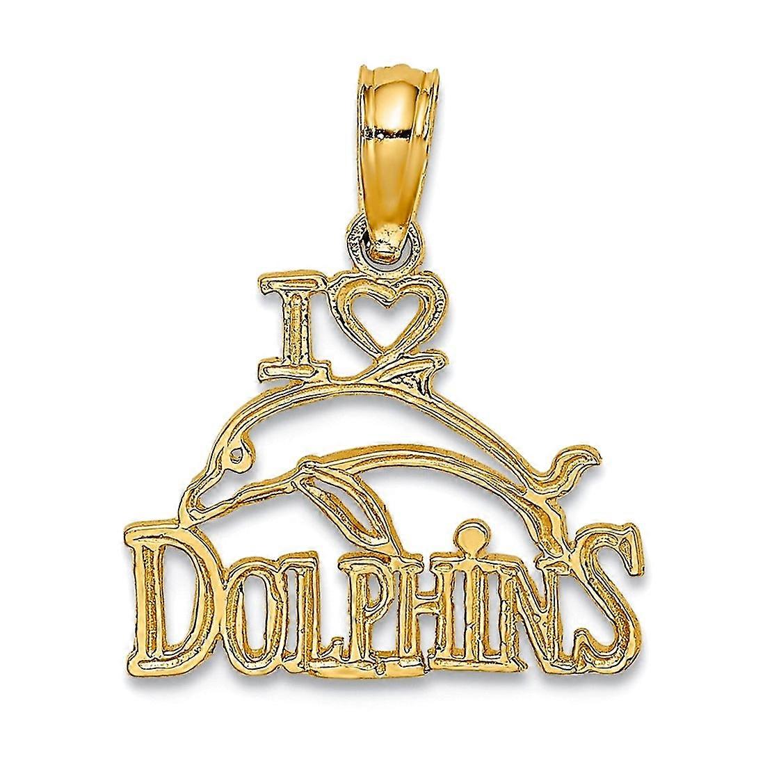 14k Gold I Love Heart Pendant Necklace Dolphins With Dolphin Picture 11x14mm Wide 0.65mm Thick-Pendant for Women