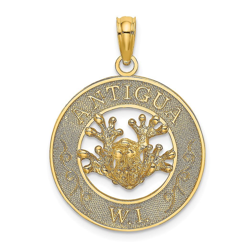 14k Gold Antigua W.i. Round Frame With Frog Center Charm 24.55x18.75mm Wide 5.53mm Thick Pendant Necklace for Women