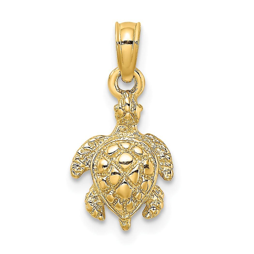 14k Gold Sea Turtle Pendant Necklace 2 d and Textured 16x8.8mm Wide 2.6mm Thick-Pendant for Women