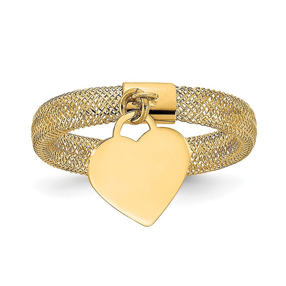 14k Gold Woven Mesh Stretch Polished Love Heart Charm Ring Size 7.00 4mm Wide Statement-Ring for Women