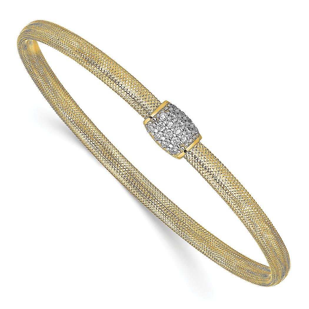 14k Gold Cubic Zirconia Polished Stretch Bangle 4mm Wide Cuff Bracelet for Women - 1.8 Grams