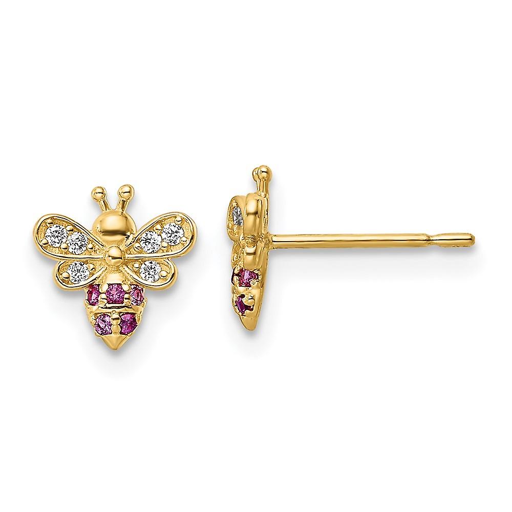 14k Gold Clear and Red Cubic Zirconia Bee Post Earrings 7.5x7.5mm Wide Stud Earring for Women