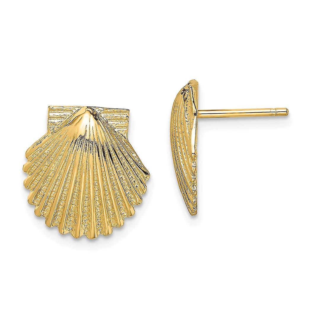 14k Gold Scallop Shell Post Earrings 2 d High Polish 12.45x11.92mm Wide Stud Earring for Women