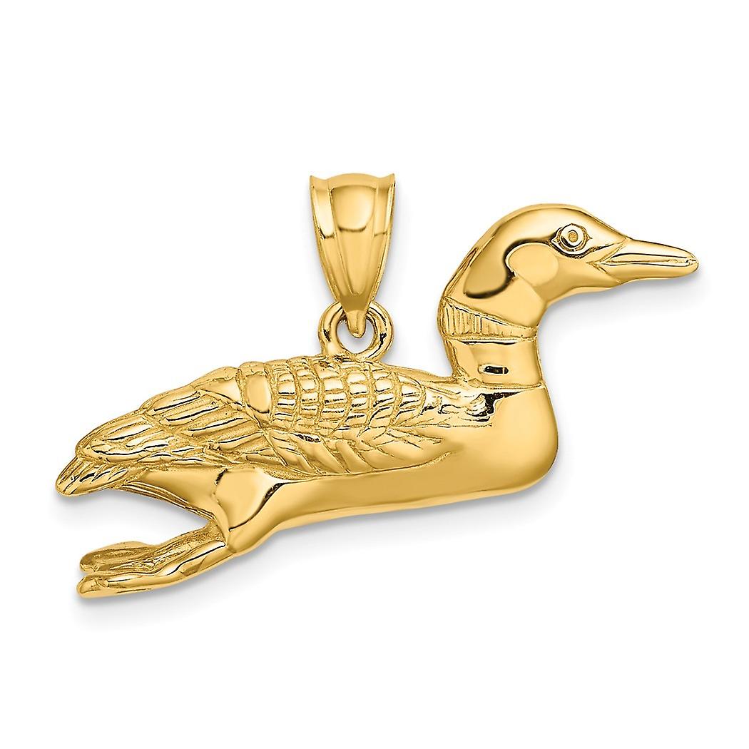 14k Gold Solid Polished 3 dimensional Mallard Pendant Necklace 19.9x28.9mm Wide-Pendant for Women
