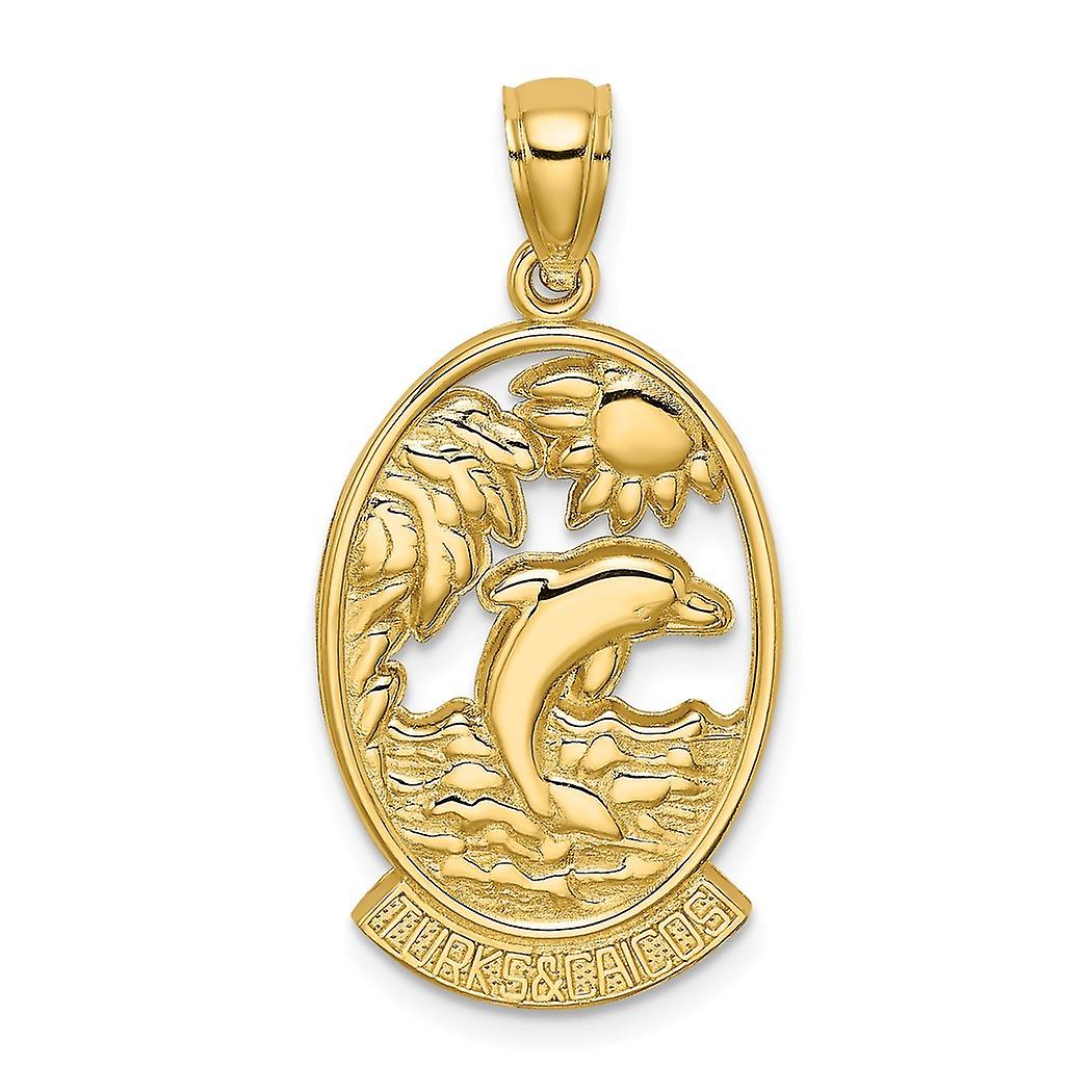 14k Gold Turks and Caicos With Dolphin And Sunset In Frame Charm 29.55x22.55mm Wide 2mm Thick Pendant Necklace for Women