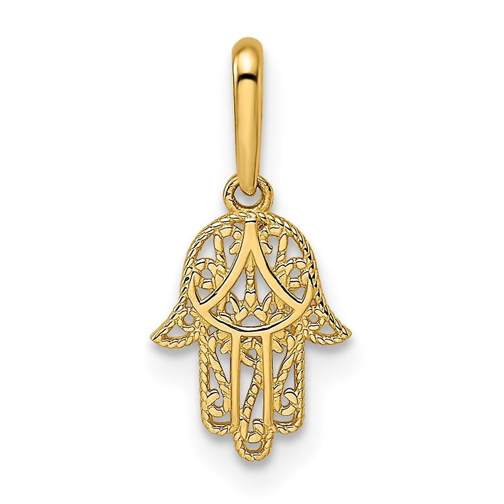 14k Gold Hamsa Pendant Necklace 7.75mm Wide 1mm Thick-Pendant for Women - .2 Grams