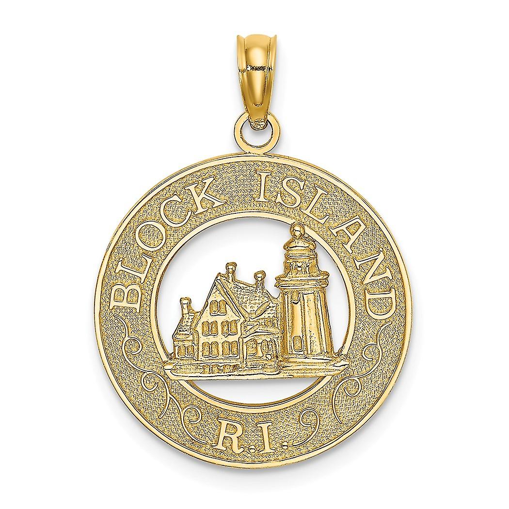 14k Gold Block Island Ri Round Frame With Southeast Lighthouse Center Charm 18.75x18.75mm Wide 1.8mm Thick Pendant Neckl